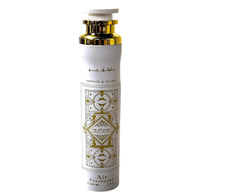Badee Al Oud Honor & Glory Air Freshener е ароматизатор за помещение с богат гурме-ориенталски профил, вдъхновен от едноименния парфюм на Lattafa. Отваря с десертно-плодов аромат на ананас и крем брюле, който бързо създава топла, уютна атмосфера. В средата ароматът се развива към подправково-приветливо сърце с канела, куркума, черен пипер и бензоин, които придават екзотична топлина и дълбочина. Финалната база от ванилия, сандалово дърво, cashmeran и мъх създава сладко-дървесен и кремав завършек, който остава приятно и устойчиво във въздуха.