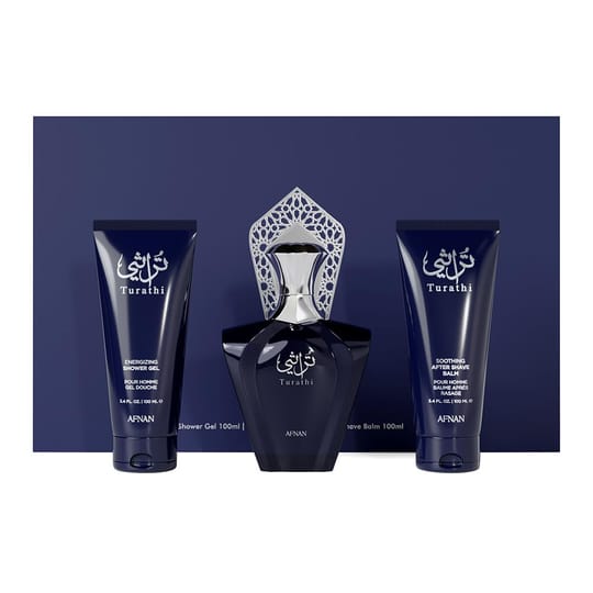 Начало / Продукти / Парфюми / Мъжки парфюми / Afnan Turathi Blue Подаръчен комплект EDP 90 ml + душ гел 100 ml + балсам след бръснене 100 ml