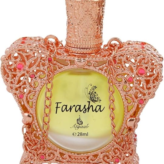 Farasha е мощен и динамичен аромат за жизнена жена. 28 ml концентрирано парфюмно масло се предлага в уникално изработена рол-он бутилка, използваща бижута и верижки, за да създадете женствен вид. Това масло е подходящо за употреба върху кожата и дрехите ви. Това може да бъде идеалният сладко ухаещ парфюм, на който да се насладите или да подарите като луксозен подарък. Парфюмното масло за нея включва базови нотки на мускус, ванилия, сандалово дърво, светло дърво и амбра с връхни нотки на фрезия, касис, бергамот и портокал.