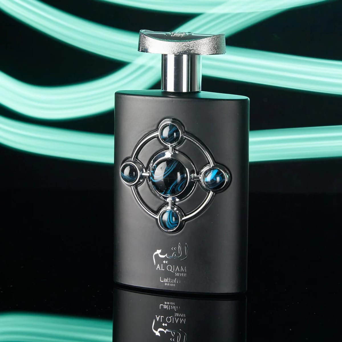 Мека и топла основа: Базата на Al Qiam Silver е мека и обгръщаща, с база от бял мускус, кехлибар и ванилия. Тези нотки създават успокояваща и топла следа, която продължава през целия ден, носейки усещане за комфорт и изисканост.
