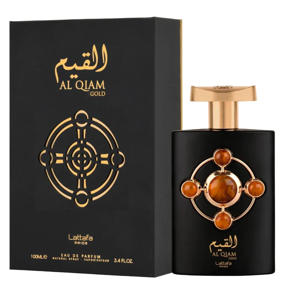 Al Qiam Gold от Lattafa Perfumes е аромат за жени и мъже. Al Qiam Gold стартира през 2022 г. Връхните нотки са шафран и малина; средните нотки са кожа и пачули; базовите нотки са уд, гваяково дърво, бензоин, кехлибар и ветивер.