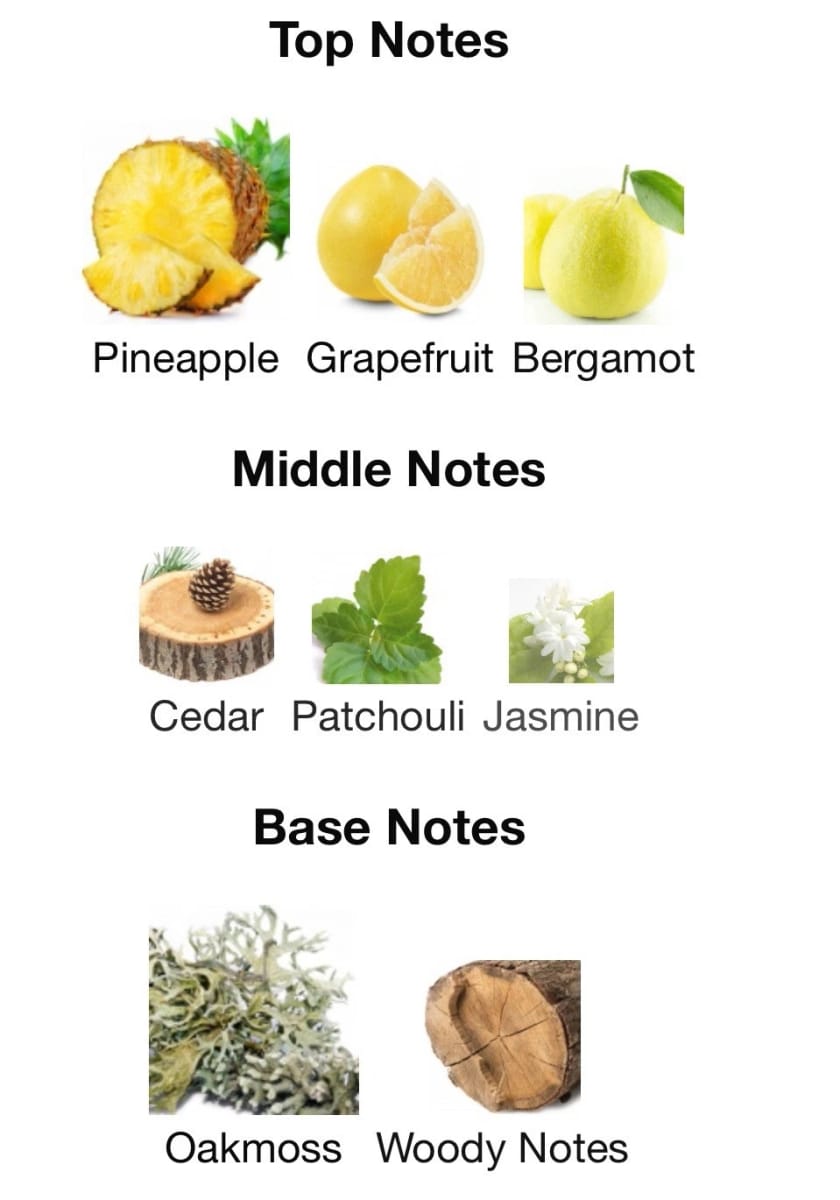Връхни нотки: Бергамот, Ананас и Грейпфрут